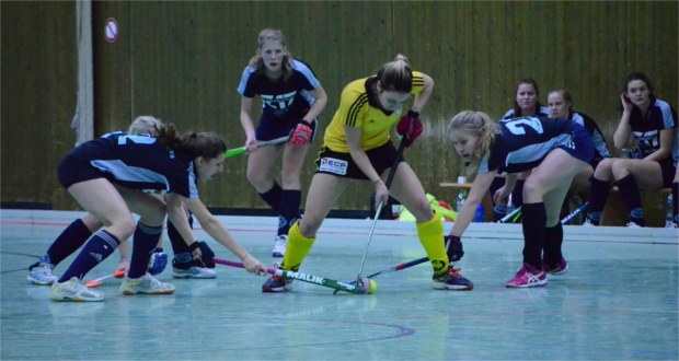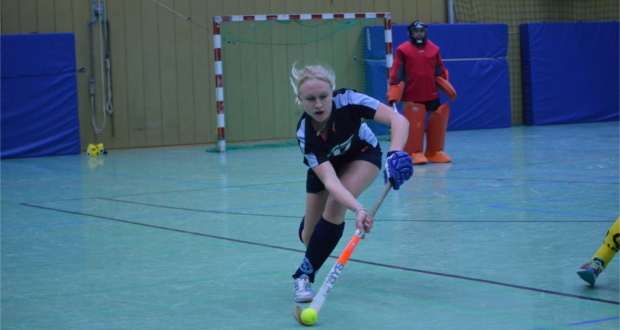 Anpfiff. Zweite Minute erste Chance für Göttingen. Eine tolle Kombination die mit einem Torschuss durch Kira endet, der nur knapp von der starken Kieler Torhüterin entschärft werden konnte. Folge: Die Halle brennt und die Mannschaft schafft es den Schwung der knapp 150 Zuschauer mitzunehmen. Die Defensive steht wie schon im letzten Spiel fehlerlos. Rennt und kämpft, um möglichst keine Lücke im System zu offenbaren. Und so zeigt sich Kiel nicht wie vorher angekündigt arschschnell, sondern zunächst eher arschverzweifelt. Nach leichtem Chancenplus Göttingen, entwickelt sich eine ausgeglichene Partie. Doch der Gegner aus der Landeshauptstadt Schleswig-Holsteins stellt um, bringt mehr Bewegung in der Mitte und schafft es somit ein ums andere Mal über die rechte Seite anzugreifen und die einzige Lücke zu nutzen. Runter die Bande, Querpass, 1:0 Kiel. Kurzes durchatmen und weiter gehts. Die Köpfe der Göttinger Damen bleiben oben und mit beeindruckendem Willen stemmt sich die Mannschaft gegen ein stärker werdendes Kiel. Beste Torchancen seitens der Gäste werden liegengelassen und als Anna geschlagen schien, wirft sich die Göttinger Capitänin aufopferungsvoll in den Schuss. Ob es der Schläger oder doch der Fuß war, konnte nicht abschließend geklärt werden. Kein Wunder, dass nach dem Spiel wieder die Stimmen nach dem Videobeweis laut wurden. Die Schiedsrichter entschieden zumindest auf weiterspielen und so blieb der Traum am Leben. Mitten in dieser Phase holt AK ganz stark eine kurze Ecke für Göttingen heraus. Und während ich schon verzweifle klappt tatsächlich im 187. Versuch Variante 7 b von der falschen Seite. Tor Kaja. Wow! Jetzt geht alles.